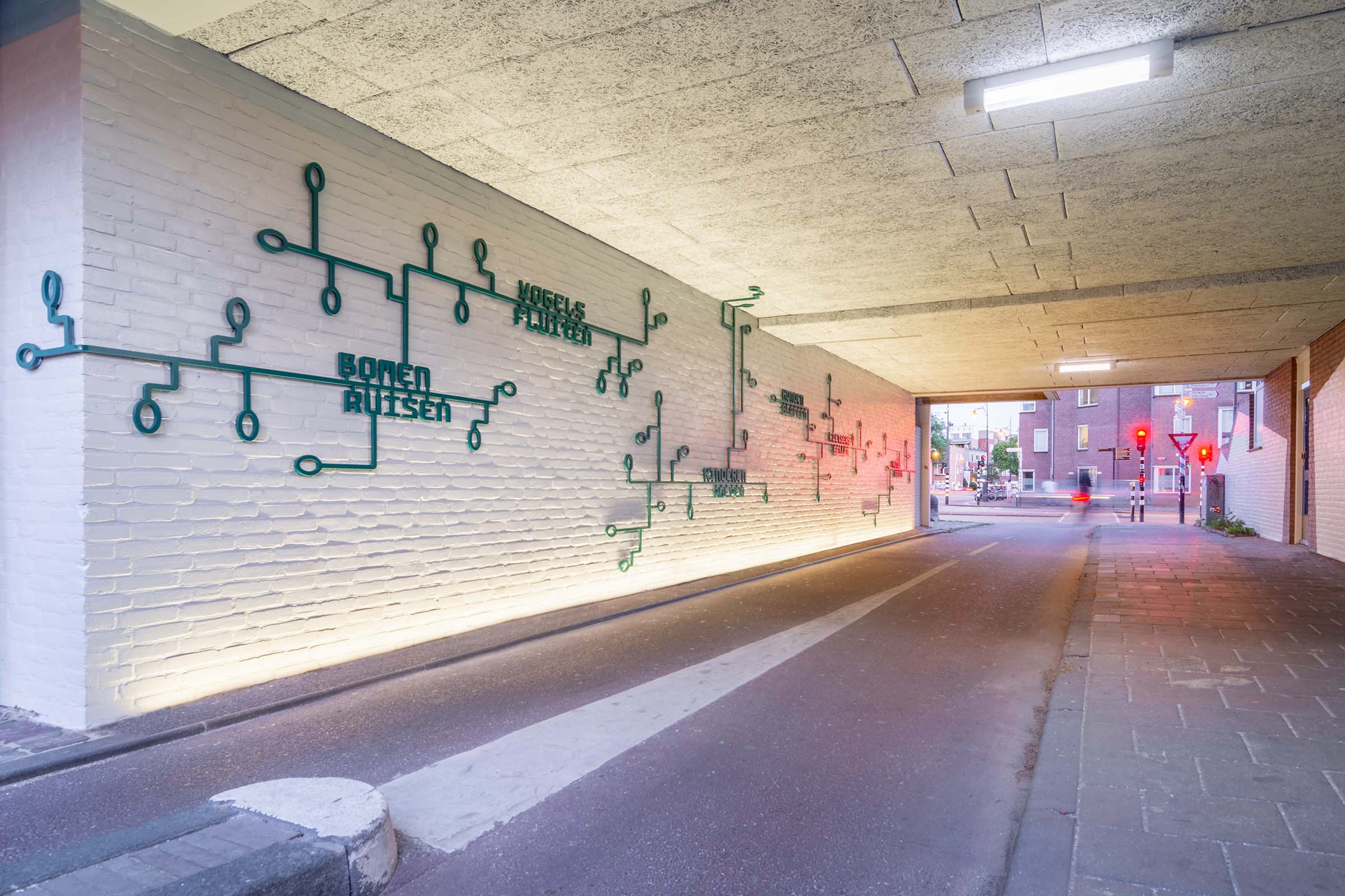 Ons werk bevindt zich op het snijvlak van toegepast ontwerp en autonoom werk. We ontwerpen identiteiten voor gebouwen, locaties en stedelijke omgevingen, altijd afgestemd op het verhaal van de plek. Dat kan zichtbaar zijn in geveltypografie, wayfinding of ruimtelijke ingrepen, maar ook subtiel aanwezig in detail en materiaalkeuze.