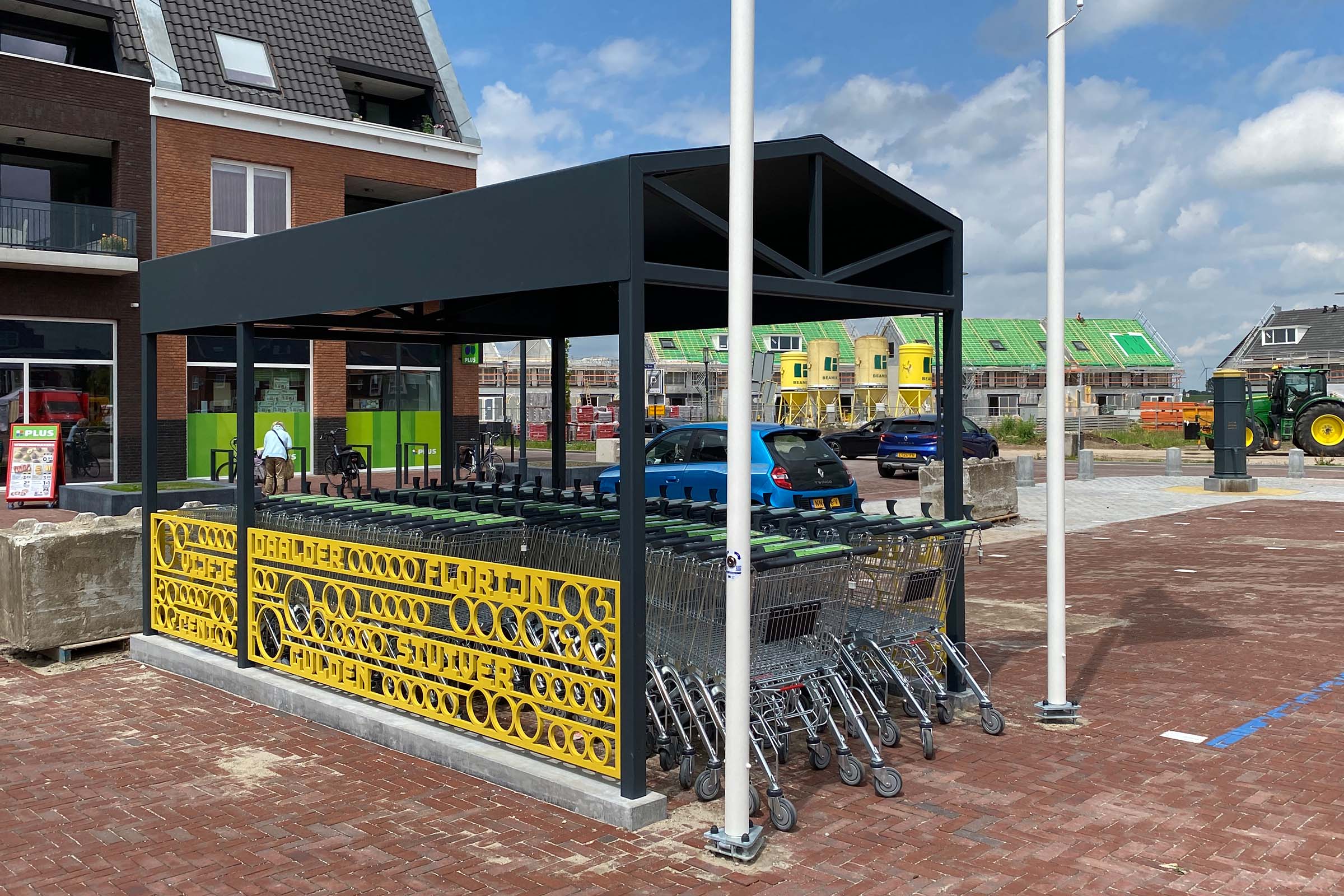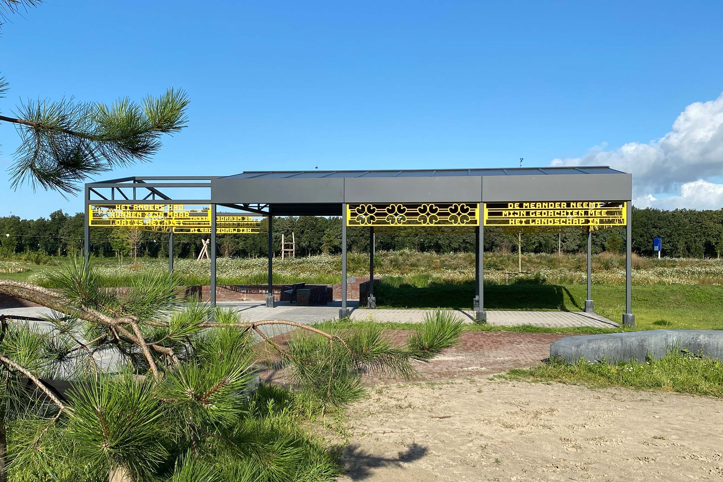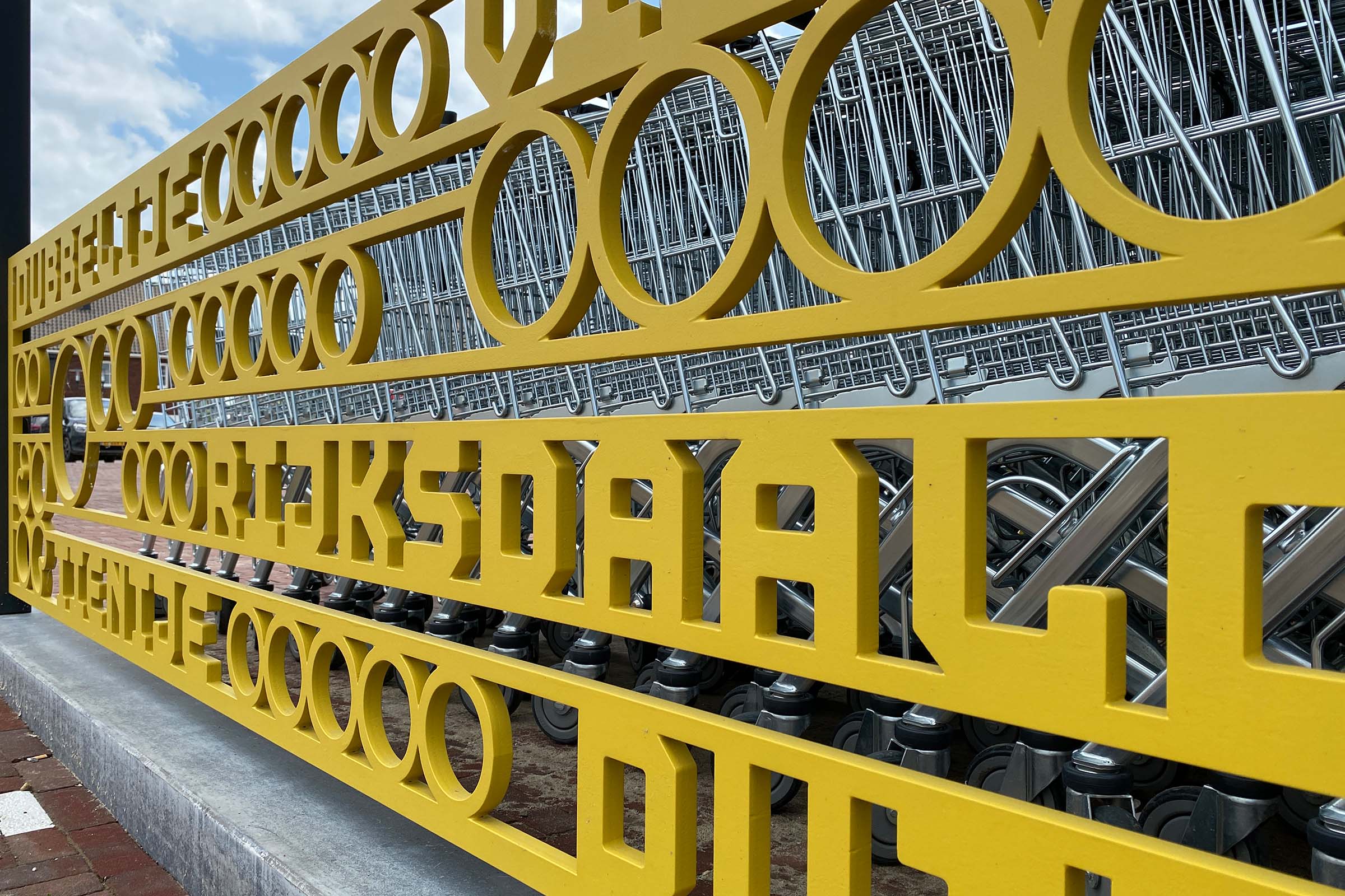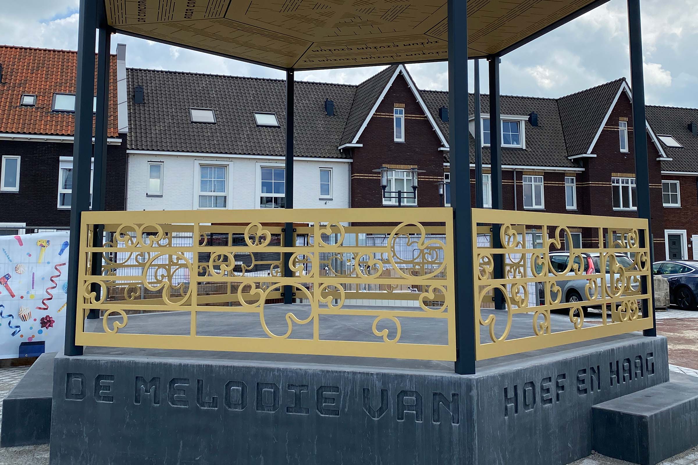 Voor Hoef en Haag mocht ik een aantal objecten van typografische vormgeving/concept voorzien met een verwijzing naar het verleden. De markthal is alst eerste afgerond en in december 2020 geplaatst. In 2022 volgden de muziektent, waterpomp en een winkelwagenvanger. Dit project was in samenwerking met SVP architectuur en Stedenbouw BV, Frank van Rijn Smederij. In opdracht van BPD.