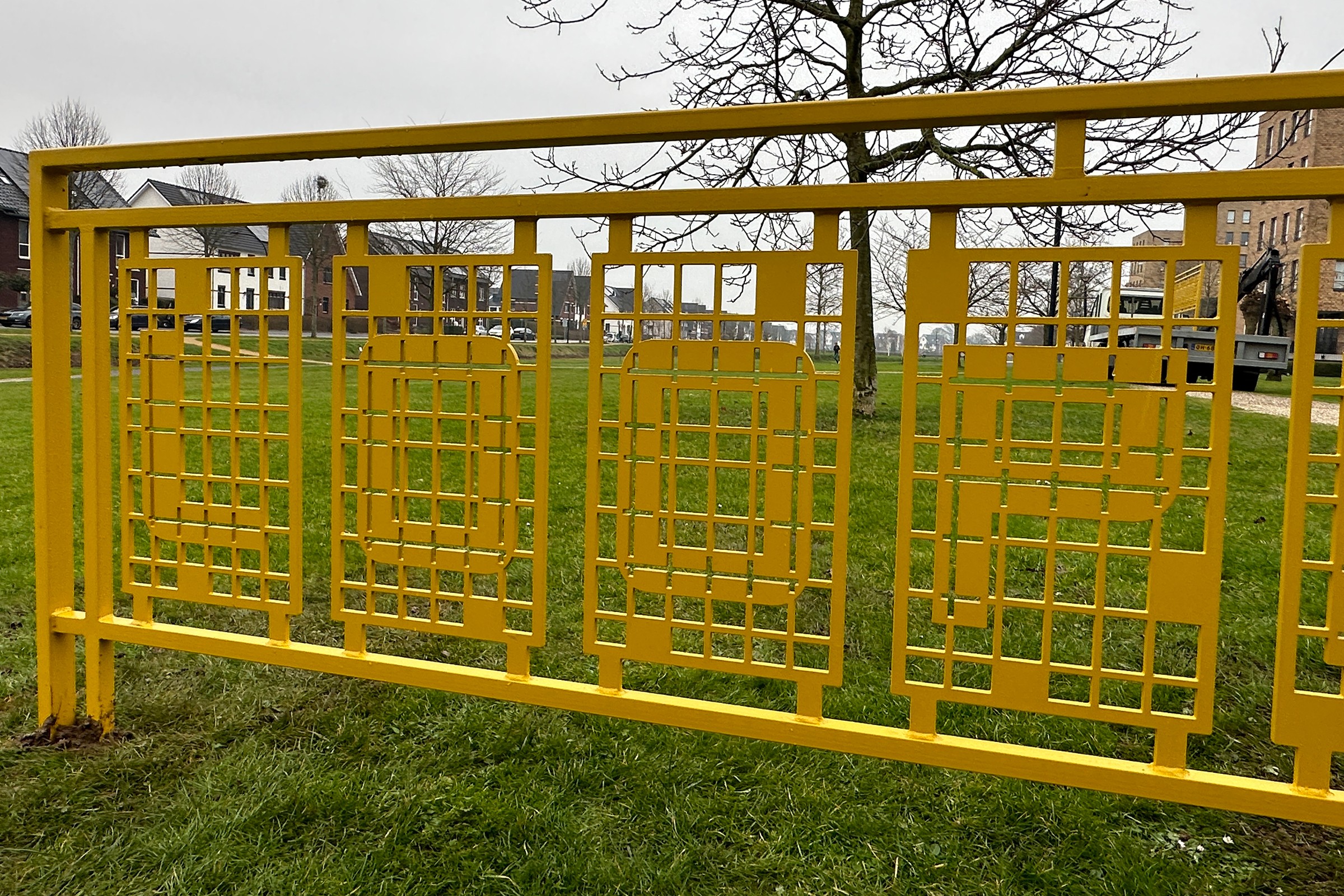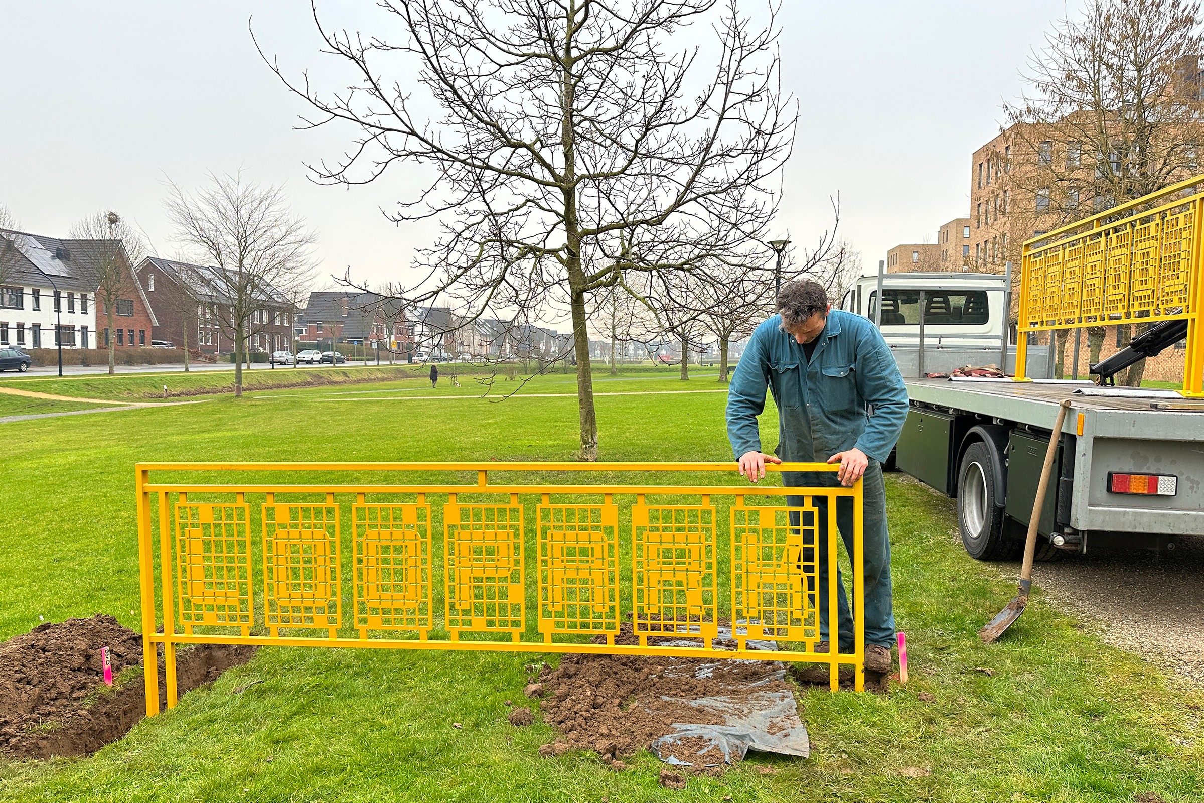 Het nieuwe kunstwerk toont de naam ‘Loopark' en verwijst tegelijkertijd naar de glastuinbouw die een belangrijke rol heeft gespeeld in het verleden van Huissen.