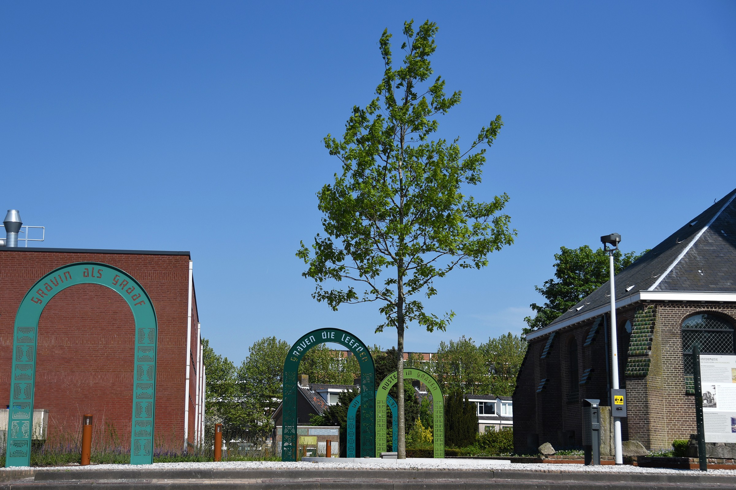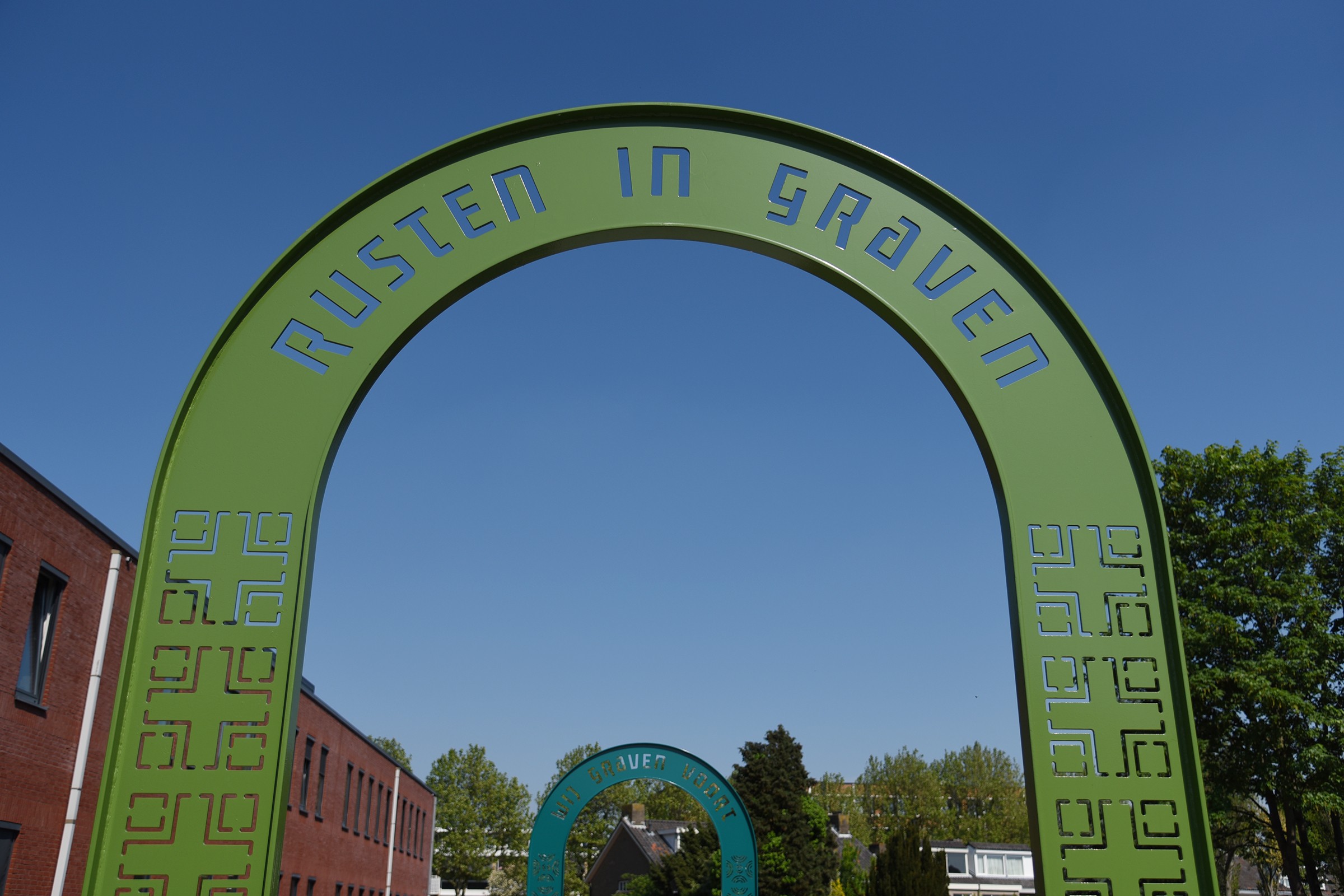 De vier bogen symboliseren de historie van deze plek. Zij werden geplaatst in een nieuw ontworpen abdijtuin, die refereert aan de abdijtuin die er destijds in de Middeleeuwen was. Tevens wordt het mausoleum beschermd tegen hangjongeren en zal de voorbijganger via informatiezuilen meer te weten komen over deze belangrijke plek voor Rijnsburg. Ik werkte samen met Fred Lansbergen en Frank Immerzeel van Starling Structures in opdracht van de Gemeente Katwijk.